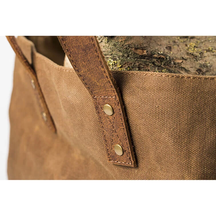 De bruine Alaskan Maker Firewood haardhouttas is vervaardigd van extra stevig, vlekwerend canvas. Hierdoor is de tas geschikt voor tal van doeleinden: voor de opslag van haardhout, het vervoeren van extra blokken of ter decoratie naast de haard. De tas is zodanig stevig, dat wanneer deze niet gevuld is alsnog goed blijft staan. De tas is vervaardigd van gewaxt canvas en afgewerkt met lederen hengels en stevige klinknagels voor extra ondersteuning. De speciale coating beschermt tegen vlekken en maakt de tas tevens gemakkelijker te reinigen.